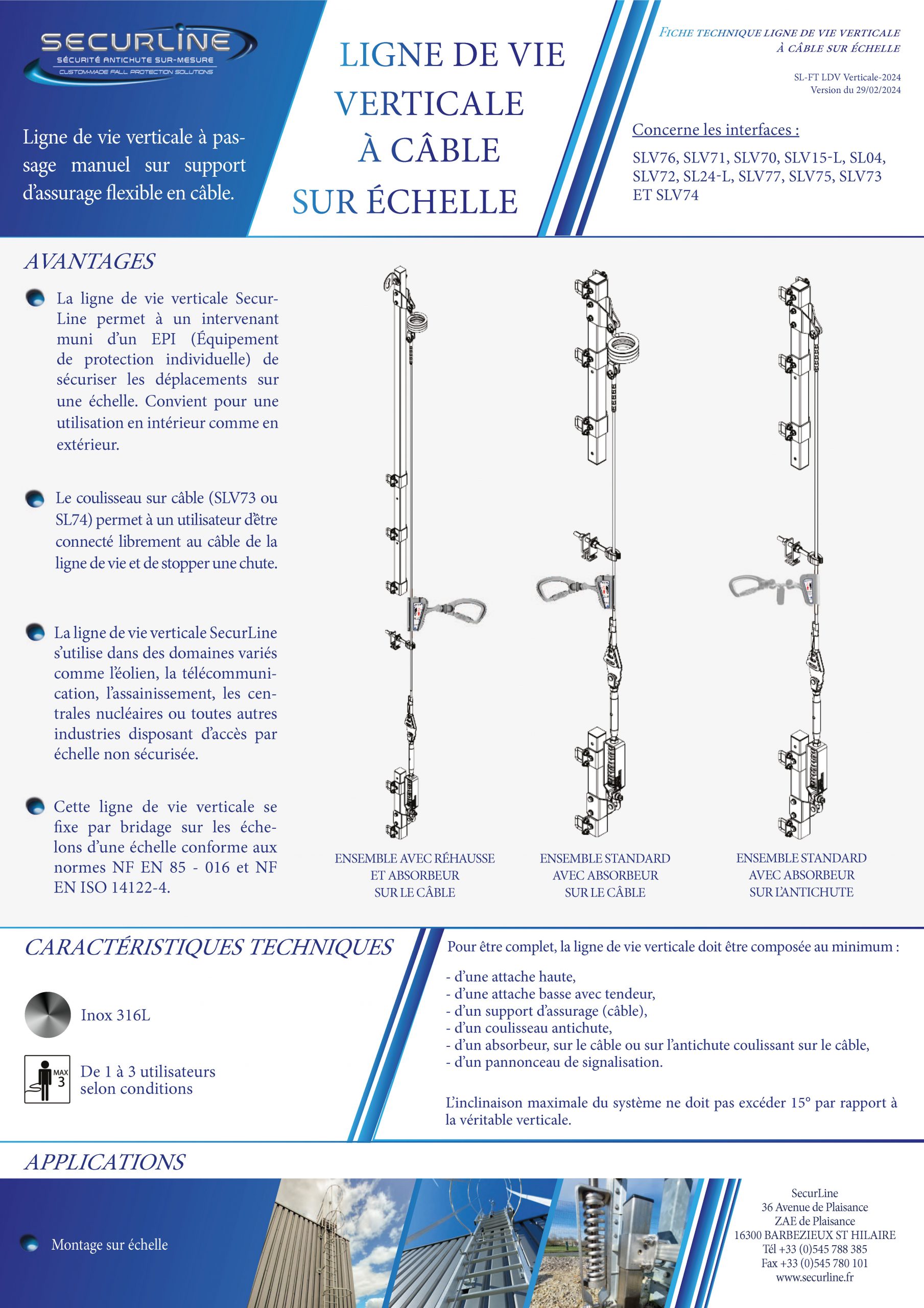 La ligne de vie rail SECURLINE est une ligne de vie horizontale rigide permettant de sécuriser jusqu’à 3 intervenants.