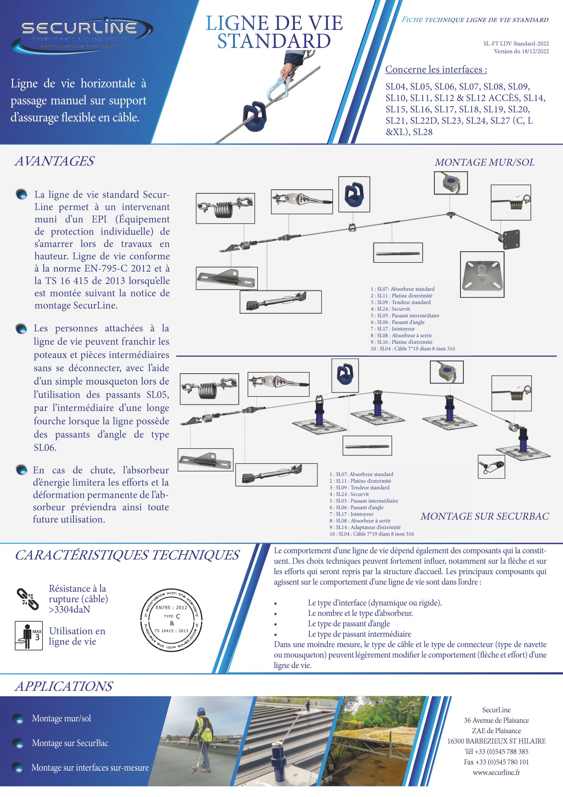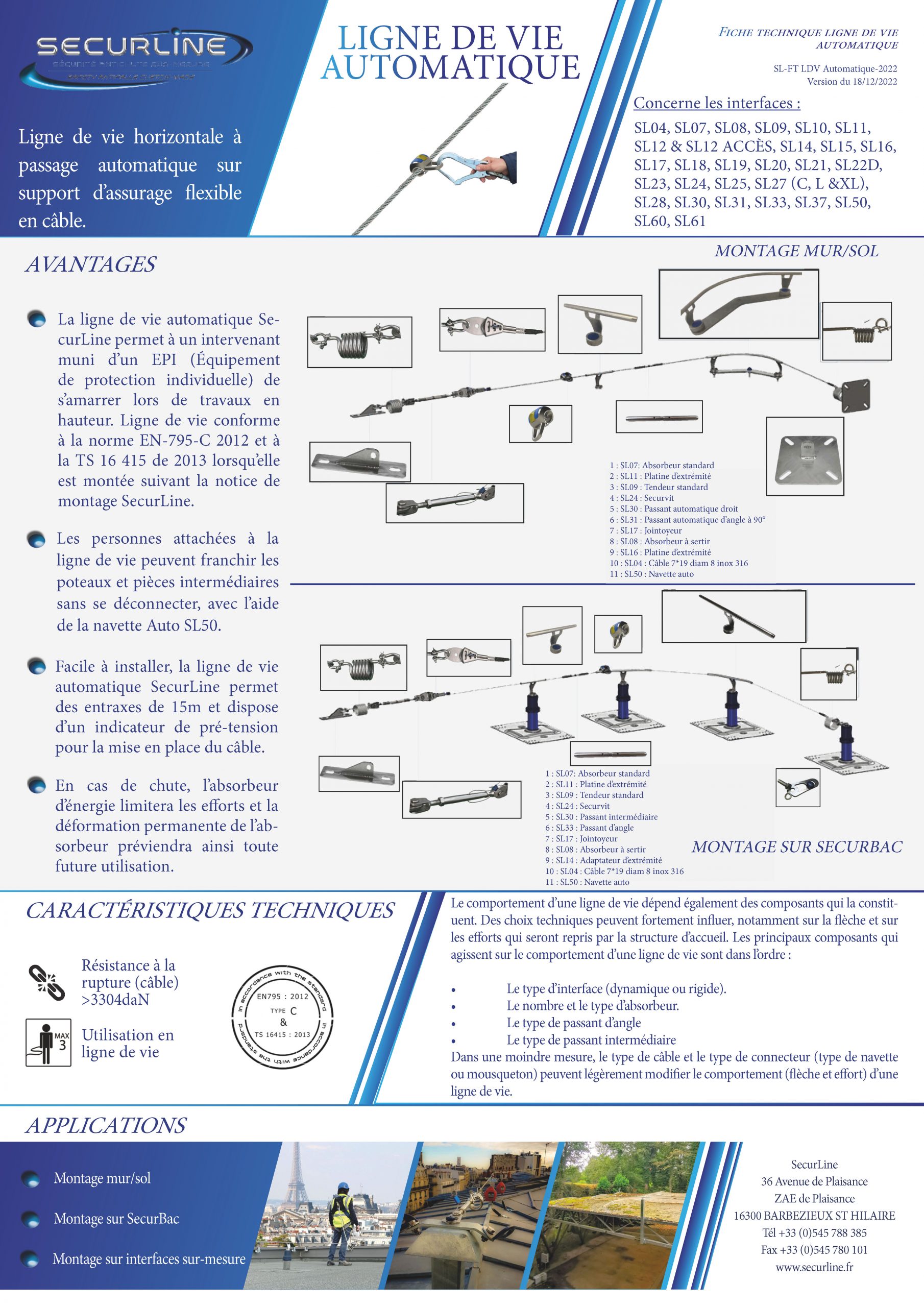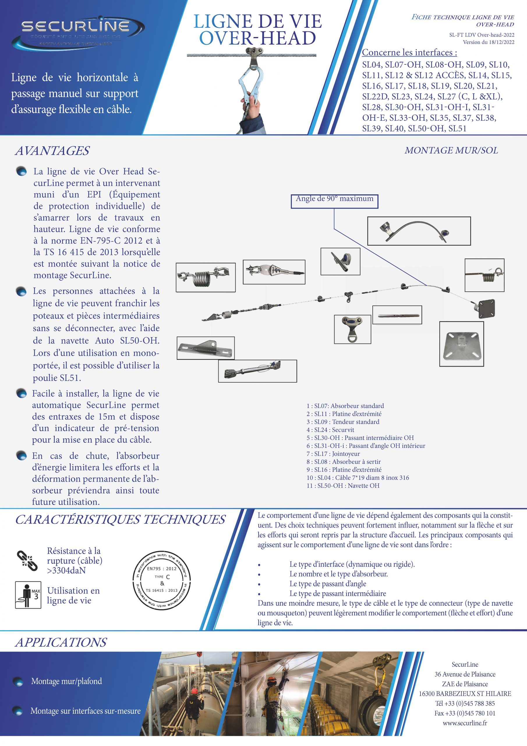 En effet la ligne de vie rail SECURLINE permet de limiter la distance nécessaire pour retenir une chuhte.